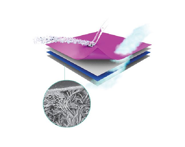 • Moisture-resistant and vapour-permeable, supporting effective microclimate management by allowing heat and moisture vapour to escape, keeping skin cooler and healthier.